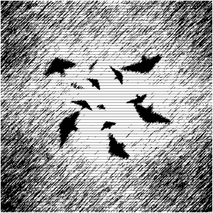 of birds, fleeing into the sky as the