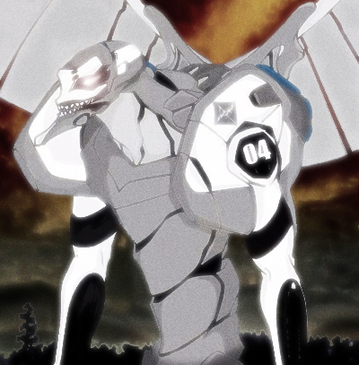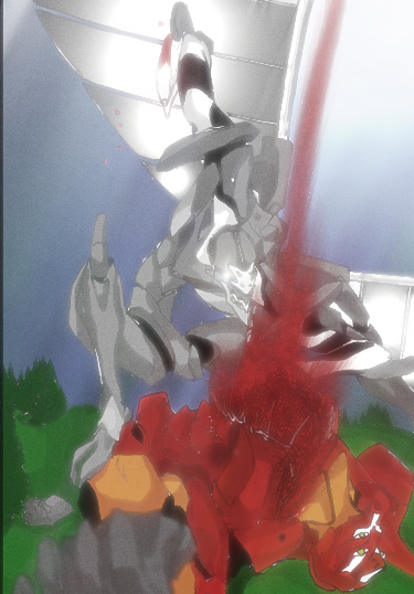 by a blinding, white luminescence from the eyes of EVA unit 01 . . .)