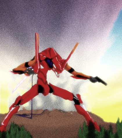 clothing in the ever brightening light of EVA 01’s eyes . . .)